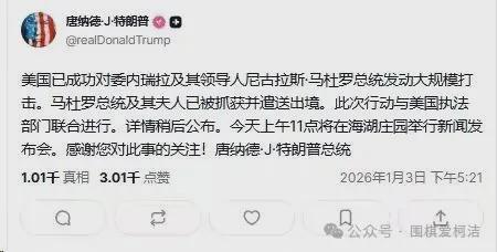 1月3日下午5点21分,国际上传来了一个令人震惊的消息,特朗普发布消息说,已经抓获了委内瑞拉总统马杜罗夫妇,并且已经将他们转移出了委内瑞拉。